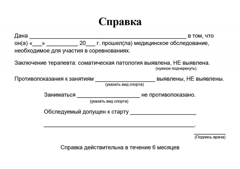 Документ действует определенный срок согласно требованиям организаторов соревнования. Обычно справка сохраняет актуальность от 3 до 6 месяцев.