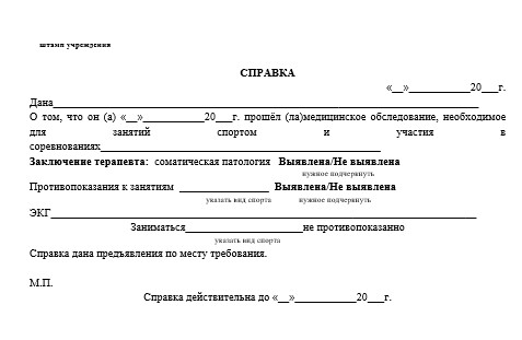 Для соревнований в бассейне обычно достаточно уже имеющейся справки. Пройти комиссию дополнительно нужно, если планируется заплыв на открытой воде на расстояние от 1,5 до 10 км. При таких дистанциях нагрузка на организм спортсмена огромна, организаторам соревнований необходимо подтверждение того, что участники ее выдержат.