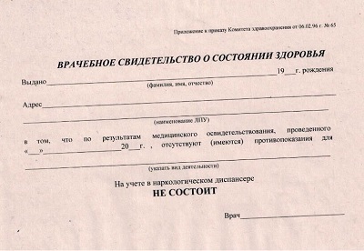 Медицинская справка от нарколога требуется в обязательном порядке: